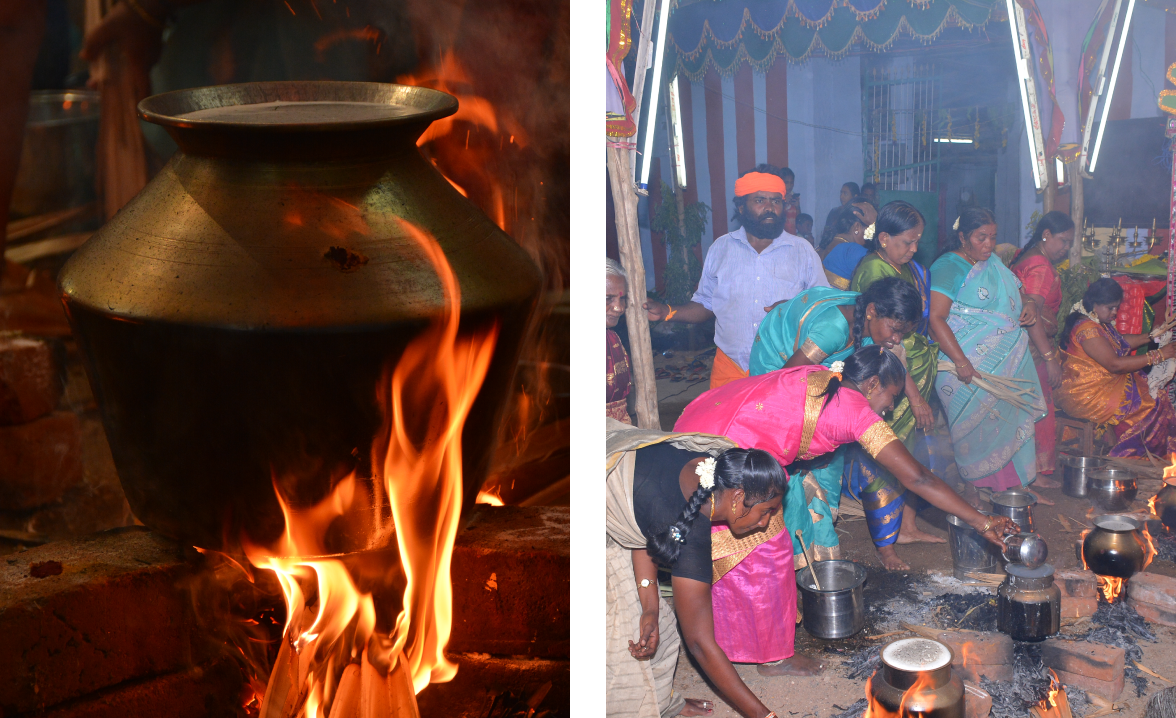On the day in our temple Pongal is made in front of the God and afford to god as prasadham. After special pooja the Prasadham is distributed to all.